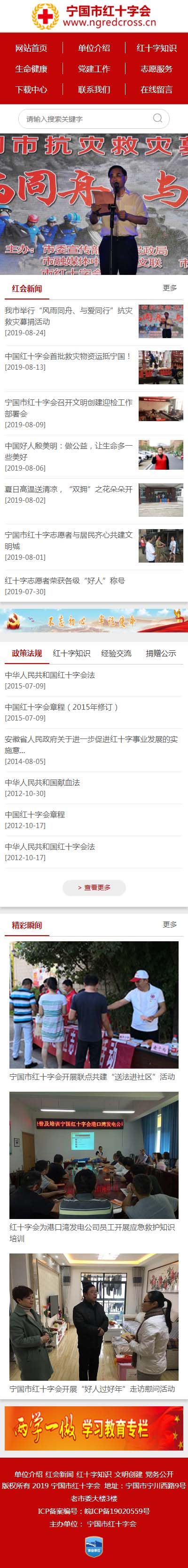 寧國紅十字會網(wǎng)站于2019年11月初建設(shè),為確保網(wǎng)站盡快開通,簽定合同后易天科技第一時間辦理網(wǎng)站備案手續(xù),經(jīng)1周制作網(wǎng)站功能建設(shè)完成。3個星期工信部備案通過,上線后提交百度搜索引擎,目前網(wǎng)站已正式上線。百度搜索排名第一。網(wǎng)站同時開通手機版,通過手機訪問自動判斷,自動適應(yīng)手機。